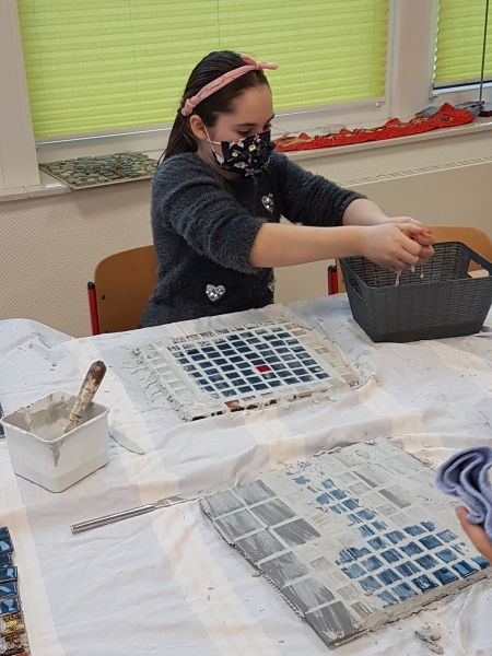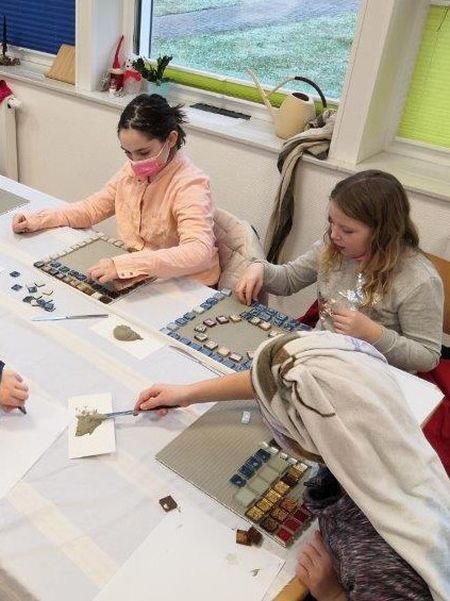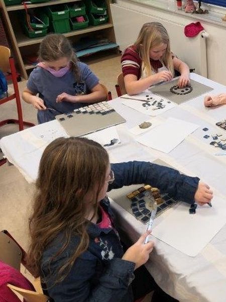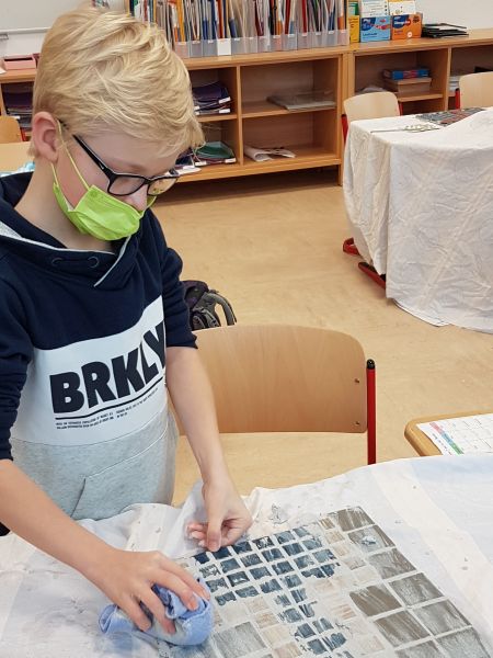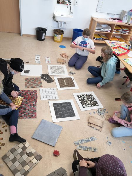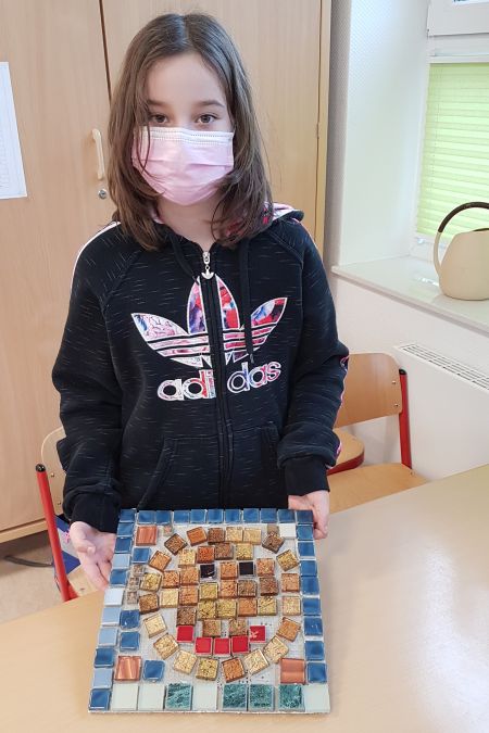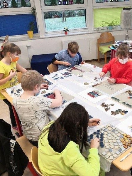 Im Rahmen ihrer AG haben die Kinder der 3. und 4. Klasse mit großem Engagement, Geschick und Ausdauer wunderschöne Mosaike hergestellt.