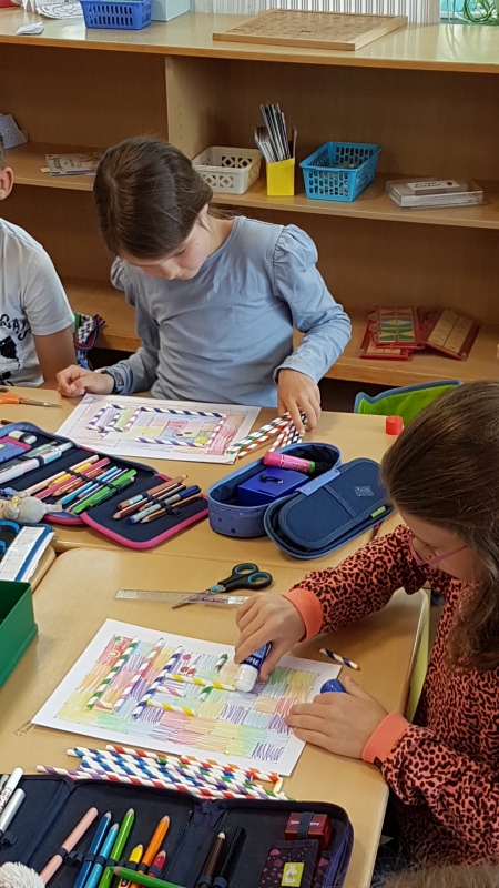 Als besonderes Projekt im Kunstunterricht haben die Waldkinder eigene Labyrinthe entworfen, die sie mit Strohhalmen nachgebaut haben. Nach der intensiven Arbeit war die Freude über das selbst erstellte Spielzeug besonders groß!