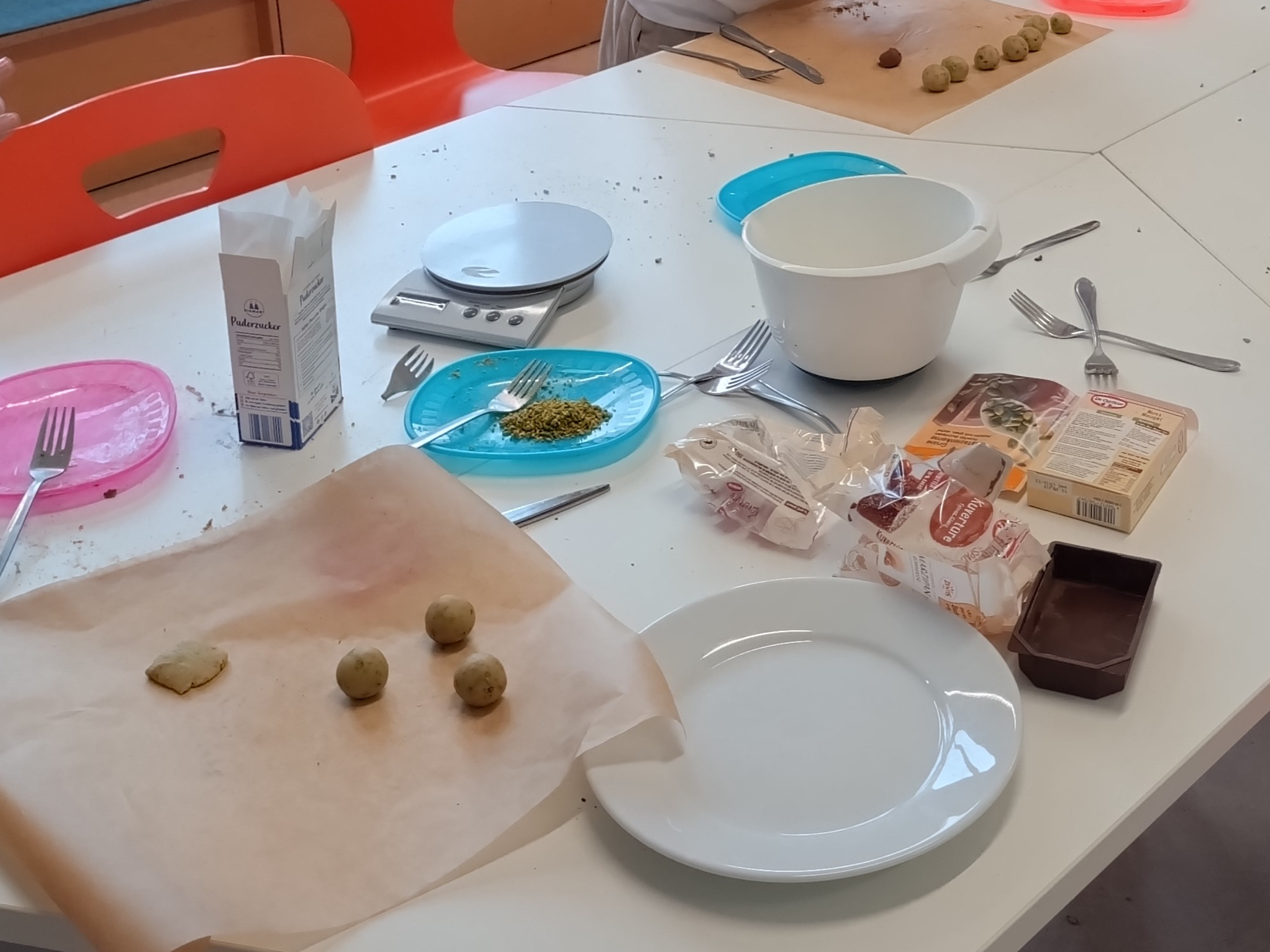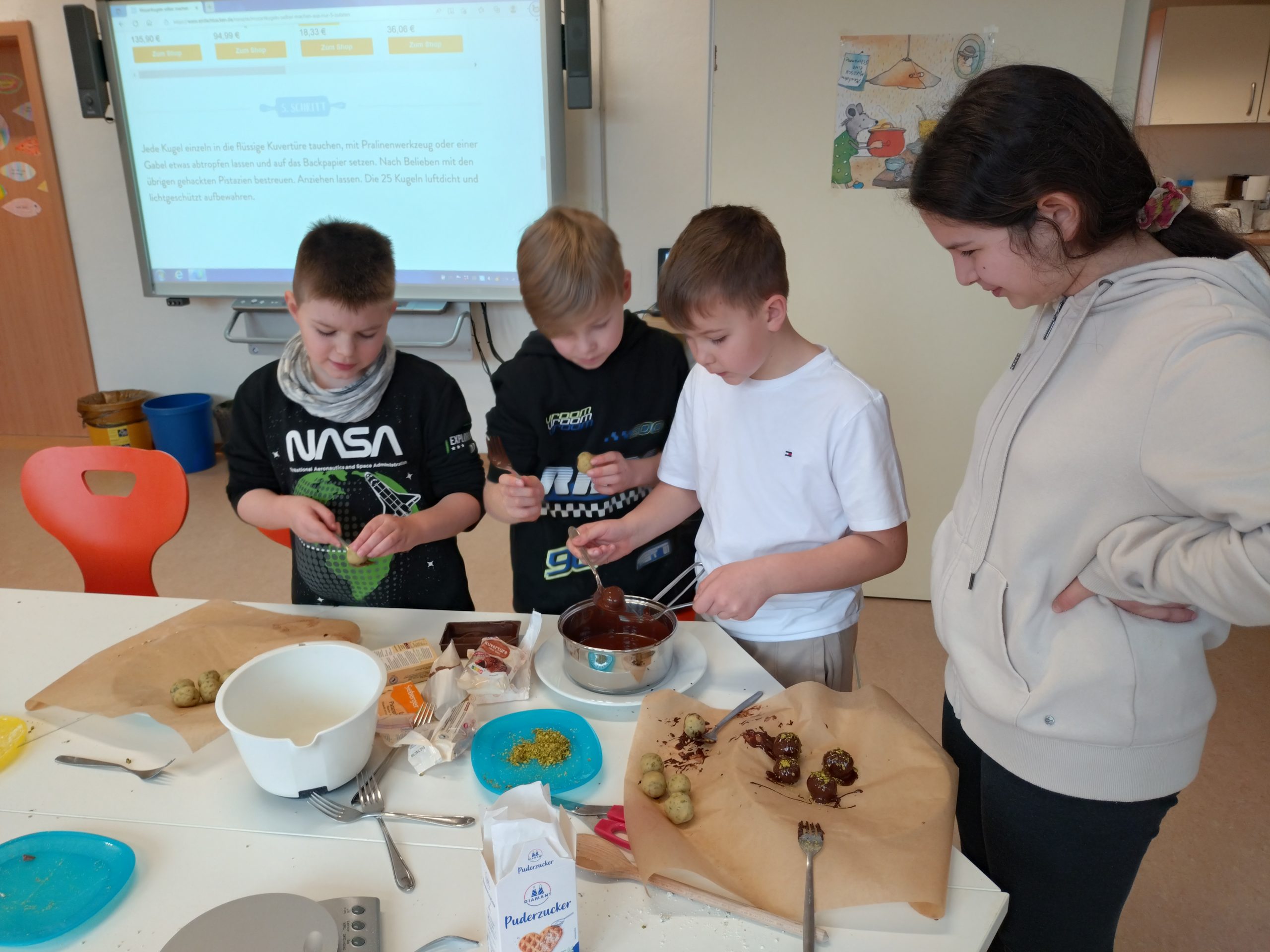 Was fällt Ihnen zum Thema „Mozart“ ein? Na, Mozartkugeln natürlich! Das haben sich auch die Bären überlegt und haben nach vielen Musikstunden zum Leben und zu den Werken Mozarts selber Mozartkugeln kreiert. Die waren wirklich lecker!