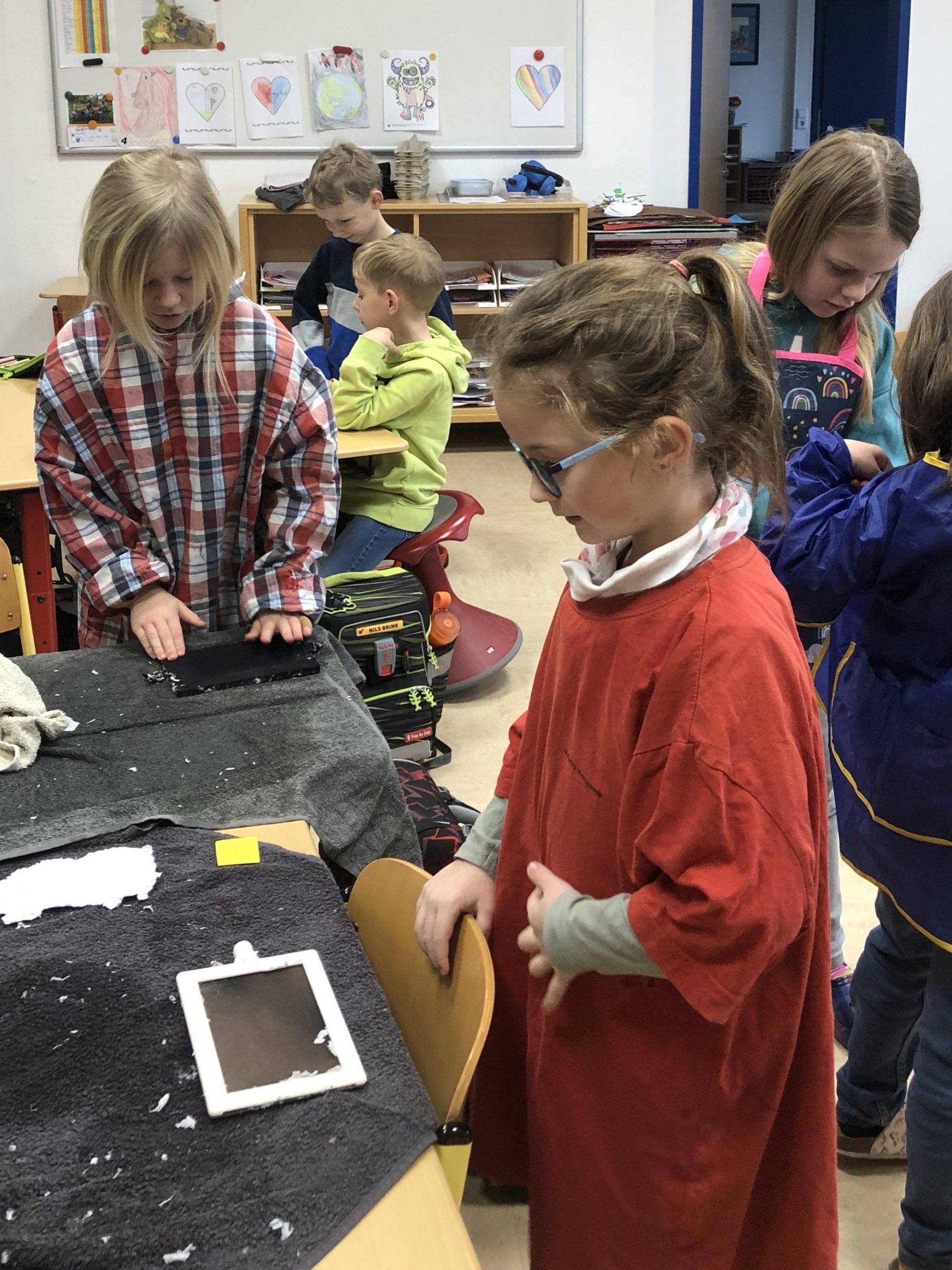 Im Kustunterricht haben die Feldkinder mit großem Eifer eigenes Papier geschöpft und anschließend daraus Osterkarten gestaltet – ein tolles Projekt!