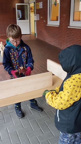 Nicht immer steht des Lesen, Schreiben und Rechnen im Vordergrund: Am 27.09.2024 haben wir mal auf ganz andere Art und Weise gelernt. Im Rahmen unseres Projekttages „Fit durch den Tag“ haben einige den Tag im Wald genossen, andere haben gekocht und gebacken, eine weitere Gruppe hat Entspannungstechniken erprobt und wieder andere haben Blumenkästen für den Schulhof gebaut. Auch wenn wir an diesem Tag nicht im Klassenzimmer gesessen haben, haben wir sicherlich alle eine Menge gelernt!
