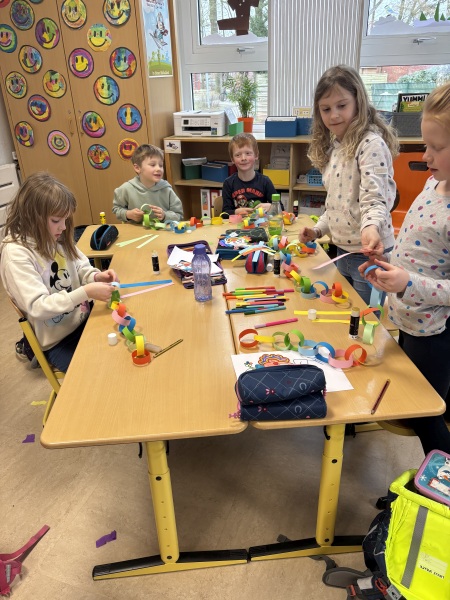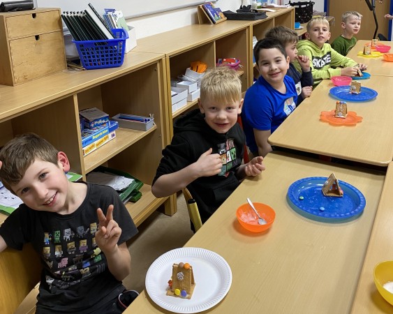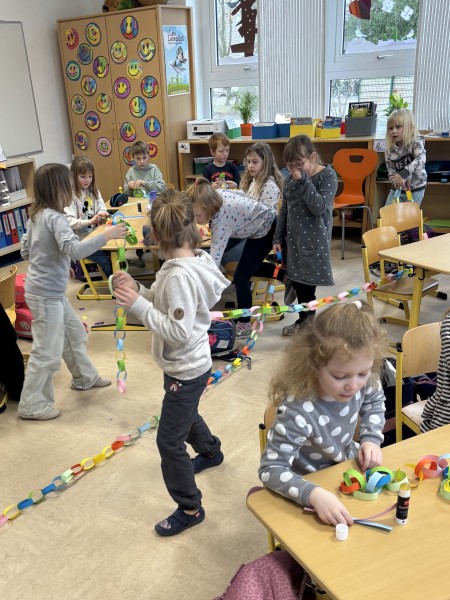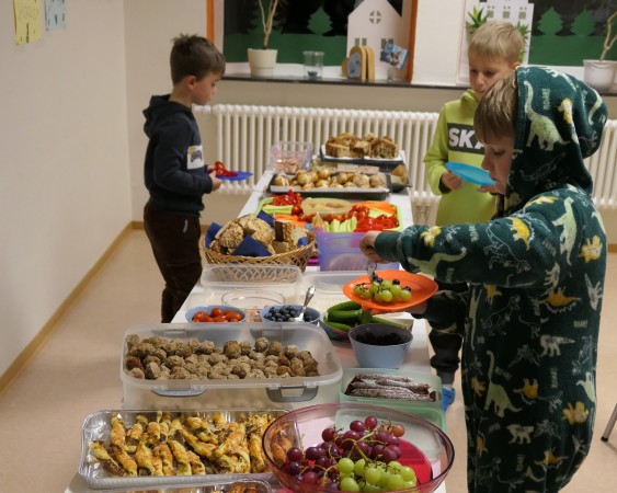 So richtig gemütlich haben wir es uns bei unserer Lesenacht am 30.01.2025 gemacht. Unter anderem haben wir der Geschichte von den “Bremer Stadtmusikanten” gelauscht und dazu ein Gemeinschaftsbild erstellt. Bei “Hänsel und Gretel” haben sich doch einige ein wenig gegruselt. Aber das selbstgemachte Knusperhäuschen hat sicherlich allen geschmeckt. Sehr üppig und lecker war auch das Buffet, dass durch die Eltern vorbereitet wurde. Vielen herzlichen Dank dafür!