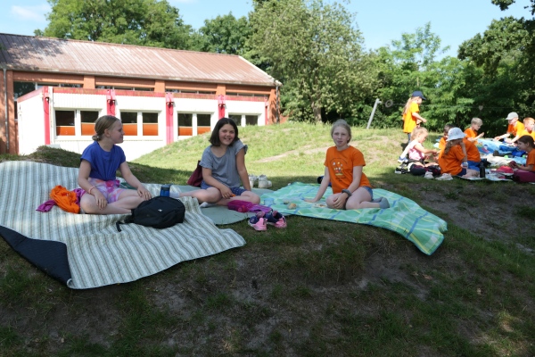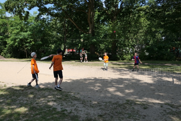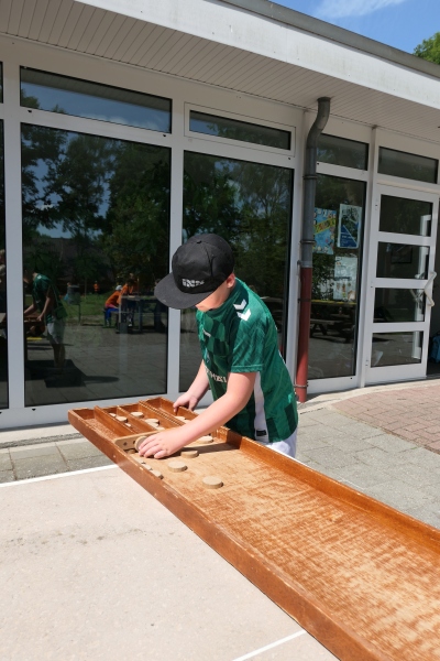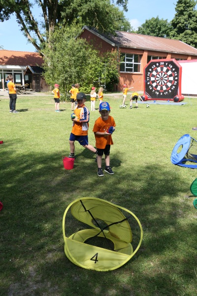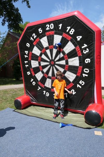Zurück an der Schule wurde erst einmal ausgiebig gepicknickt, bevor sich dann alle an den zahlreichen Spielstationen vergnügen konnten. Die Soccer-Dartscheibe war dabei sicherlich ein Highlight.