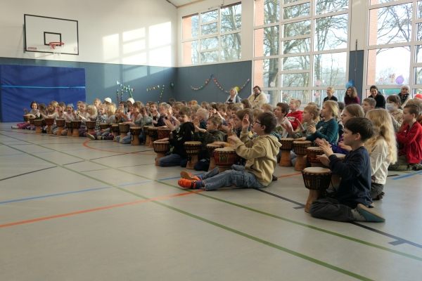 Dank vieler kleiner und großer Spenden konnten wir anschließend eigene Trommeln für unsere Schule anschaffen, so dass es auch in Zukunft durch die Schule hallen wird: “Ich – bin super, du – bist super, wir – sind super, alle – sind super…!”