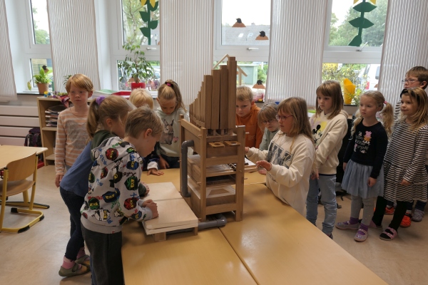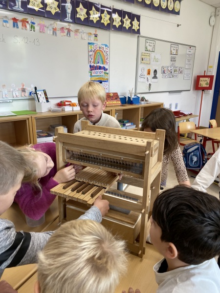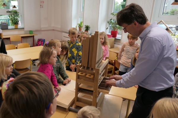 “Wie sollen diese vielen Einzelteile irgendwann einen Ton erzeugen?” Das haben sich viele von uns gefragt, als Herr Dahlke am 30.09.2024 die über hundert Teile seiner transportablen Orgel auf den Schultischen verteilt hatte. Herr Wilfried Dahlke ist Direktor des Orgeneum in Weener und gerne in den Schulen unterwegs, um den Kindern die Königin der Instrumente näher zu bringen.